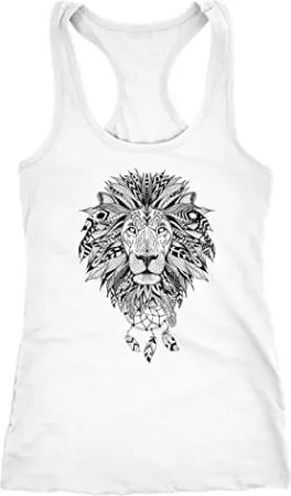 Damen Tank-Top Zentangle Löwe Lion Atzekenmuster Boho Bohamian Atzec Federn Traumfänger weiß XL