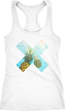 Damen Tank-Top Ananas Aloha Hawaii Blumen Tropical Paradise Racerback Slim Fit tailliert Baumwolle weiß L