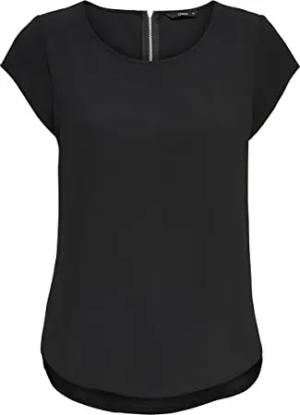 Damen Einfarbige Kurzarm Bluse Basic Rundhals Ausschnitt Blusen T-Shirt Blouse Oberteil ONLVIC, 15142784,Schwarz,42