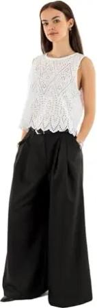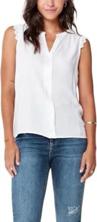 Damen Legere Shirt Bluse mit Spitzen Details Ärmelloses Top Oberteil, Farben:Weiß, Größe:34