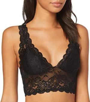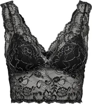 Damen Spitzen Bustier BH ohne Bügel | Lace Triangel Bra ONLCHLOE | Cups Breite Träger Crop Top, Farben:Schwarz, Größe:XS