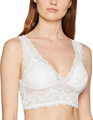 Damen Spitzen Bustier BH ohne Bügel | Lace Triangel Bra ONLCHLOE | Cups Breite Träger Crop Top, Farben:Weiß, Größe:L