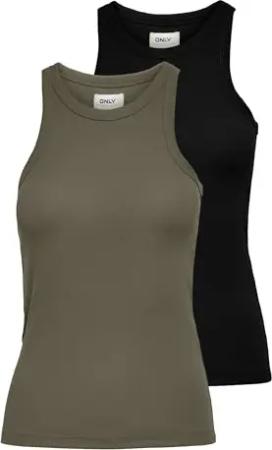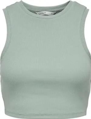 Damen Geripptes Cropped Top Kurzes T-Shirt Rundhals Oberteil Ärmellos ONLMAJLI