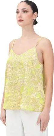 Grünes Satin-Top für Damen mit Paisley-Muster, gelb, Small