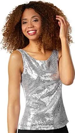 Pailletten Top Damen, Glitzer Oberteile Damen, Pailletten Oberteil Damen, Disco Kostüm Frauen, sexy Faschingskostüme, Party Oberteil, Party Top, Galaxy Kostüm - Silber, M