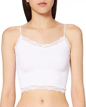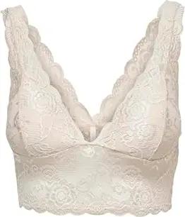 Damen Spitzen Bustier BH ohne Bügel | Lace Triangel Bra ONLCHLOE | Cups Breite Träger Crop Top, Farben:Weiß, Größe:L