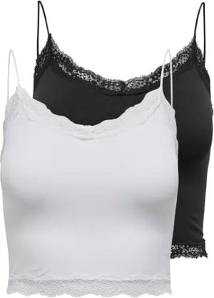 NOS Damen ONLKIRA LACE Singlet 2 Pack NOOS Top, 2per Pack Schwarz (Black Pack: Black and White), Medium (Herstellergröße: M)