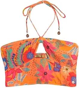 Damen Gewebtes, kurz geschnittenes Oberteil mit Aussparung Vera Geblümt Orange 36