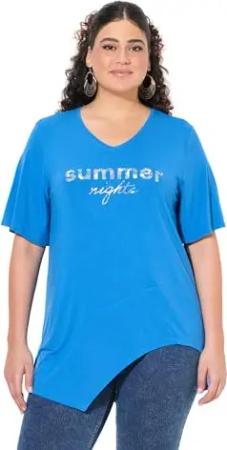 Damen große Größen Übergrößen Plus Size T-Shirt, Schriftzug, Volant, V-Ausschnitt, Halbarm Petrolblau 42+ 838618738-42+