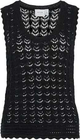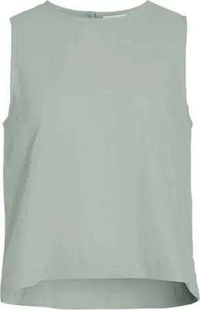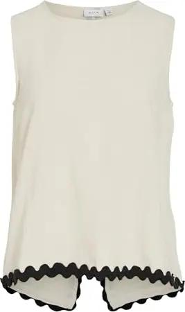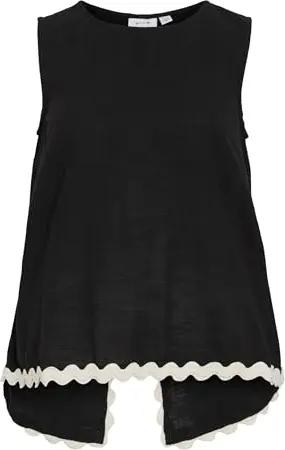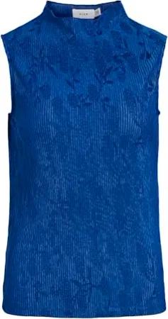 Damen Blusen Top mit Rundhals und Rückenschlitz Ärmellos Leinenoptik, Farben:Blau, Größe:34