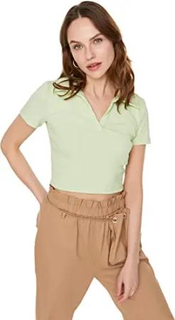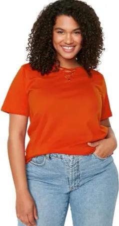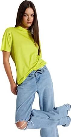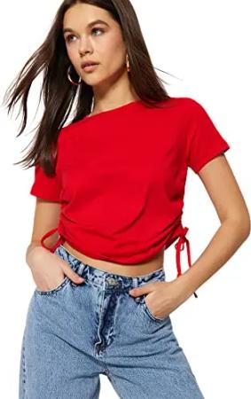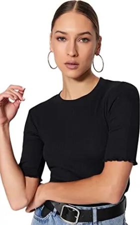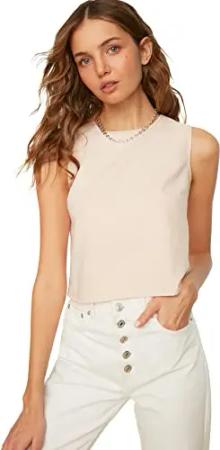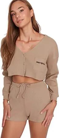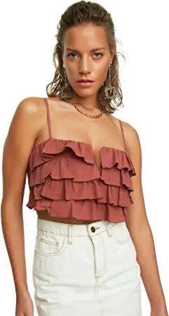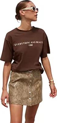 Damen Trendyol Damen Regular Standard Rundhals Gewebtes T-shirt Hemd, Braun, M EU