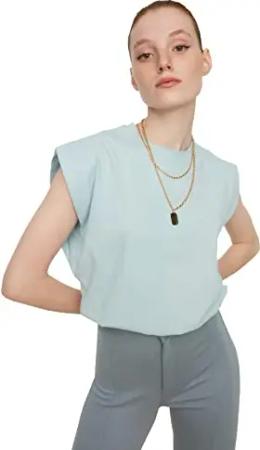 Damen Ärmelloses Grundlegendes T-shirt T Shirt, Blau, S EU