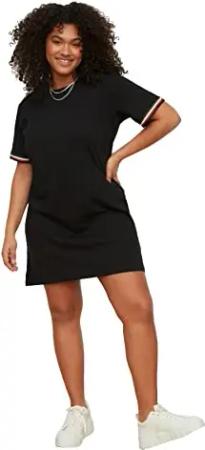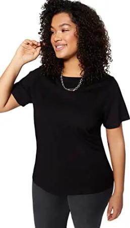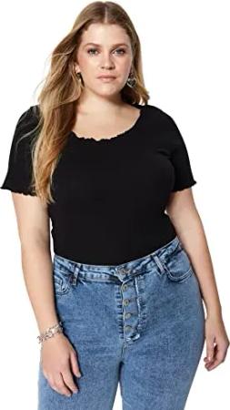 Damen Women Plus Size Regular fit Basic Crew Neck Knit Plus Size T-Shirt Damen Plus Size Regular Fit Basic Strick-T-Shirt mit Rundhalsausschnitt in Übergröße, Black,