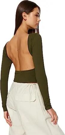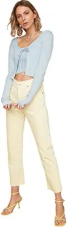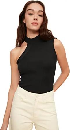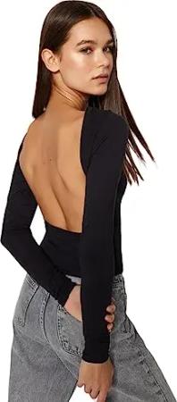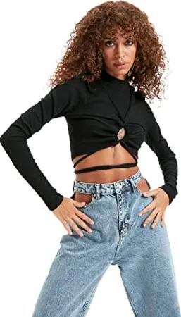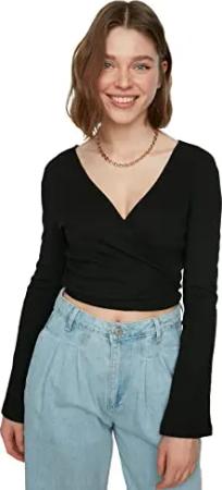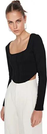 Damen Trendyol Meine Meeräsche Crop Gestrickte Bluse Blouse Westlich, Schwarz, XL