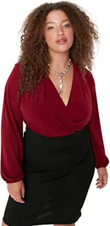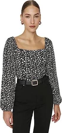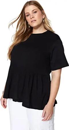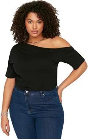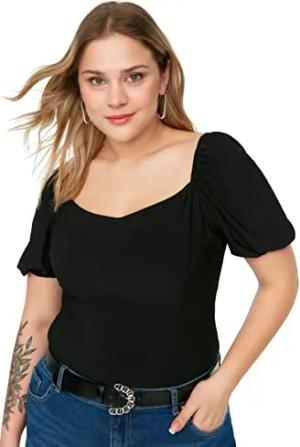 Damen Trendyol Damenbluse in Übergröße, Figurbetont, Quadratischer Kragen, Gewebt, Übergröße Hemd, Schwarz, XXL Große Größen EU