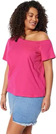 Damen Frauen Regular Fit Basic Boat Neck Knit Plus Size Bluse Hemd, Fuchsia, X-Large