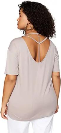 Damen Frauen Regular Fit Basic V-Ausschnitt Strick Plus Size T-Shirt, Mink, XXL