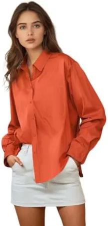 Damen Women Collar Woven Shirt Basics Oversize Basic Hemdkragen Webhemd, Orange, 36