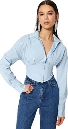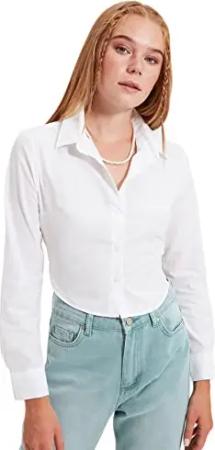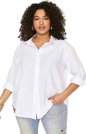 Damen Light Blau Boyfriend Basic Long Sleeve Woven Tbbss22go0319 Plus Size Shirt, Weiß, Einheitsgröße EU