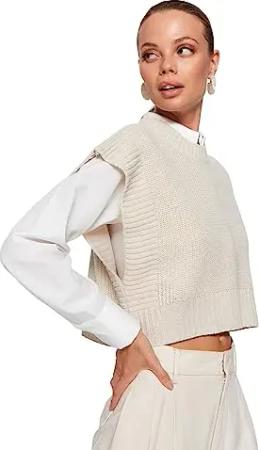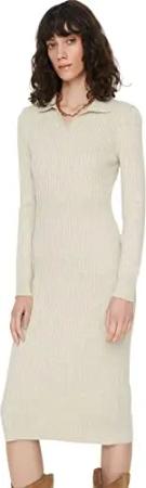 Damen Trendyol Women's Knitted Dress With Polo Collar Kleid, Beige, M EU