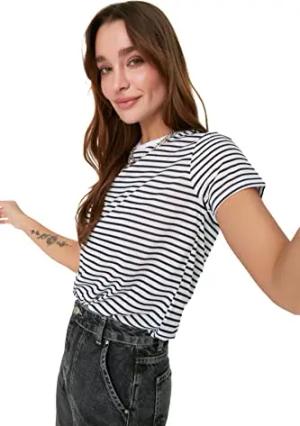 Damen Gestreiftes Basic Gestricktes T-shirt T Shirt, Schwarz, XS EU