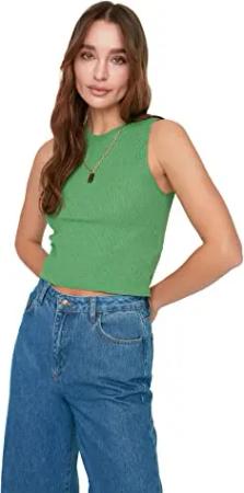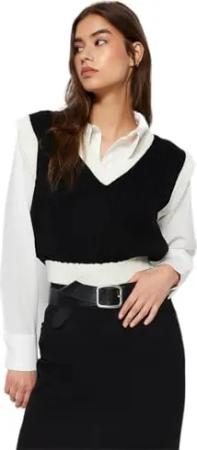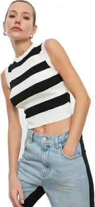Tendyol black tick craissile crop gestrickte bluse, schwarz,
