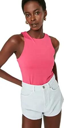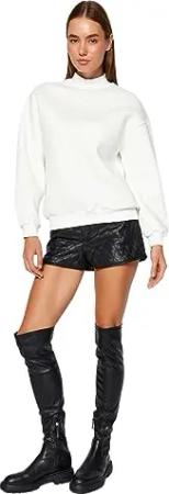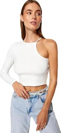 Damen Trendyol steile Kragen grundlegend gestricktes T-Shirt T-Shirt, White, XL