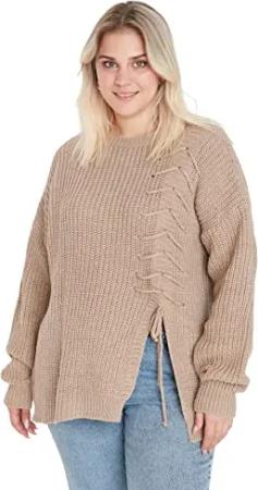 Damen Oversize Basic Rundhals Knit Plus Size T-Shirt Hemd, braun, XX-Large