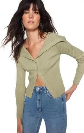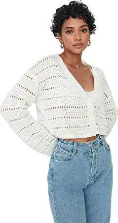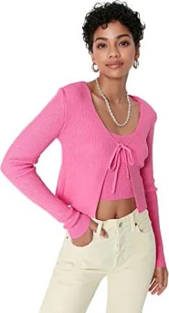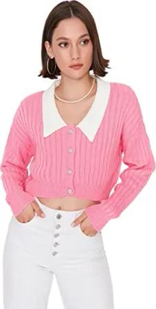 Damen Trendyol Damen Strickjacke mit U-ausschnitt Pullover, Rosa, L EU