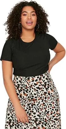 Damen Trendyol Woman Plus Size Regular Standard Choker High Neck Woven Plus Size T-shirt Hemd, Schwarz, XL EU