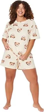 Damen TBBSS23AI00022 Pyjama-Set in Übergröße, Ecru, XXL