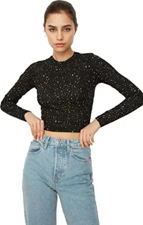 Damen Trendyol Apruk Shiller Detailed Knessic Shipping Sweater, Schwarz, S EU