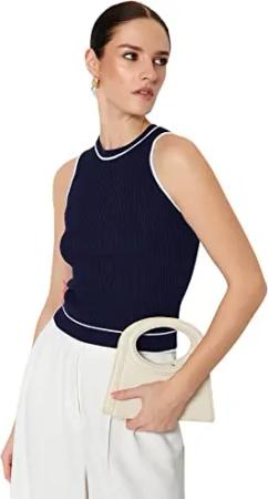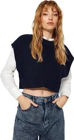 Damen TWOSS23BZ00611 Regular Fit Basic Rundhals Strickwaren Bluse, Marineblau, M