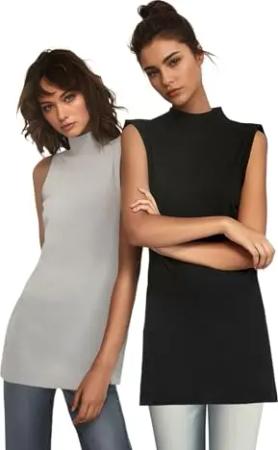 Damen Women Standing Collar Knit Tunics Modest Fitted Basic Stehkragen Strickmodest Tuniken, Black-Grey, S