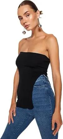 MİLLA Schwarz Strapless Kragen Side Zipper Crepe Knitted Blouse TWOSS23BZ00928