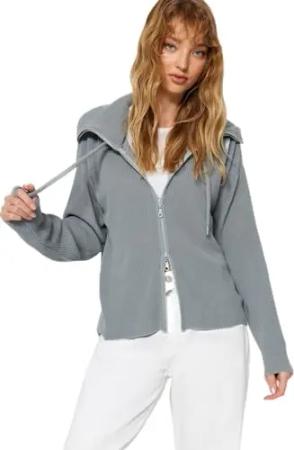 Damen Stehkragen gestreift Oversize Sweater Sweatshirt, grau, 42