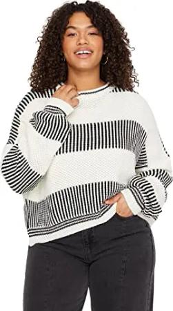 Women's Damen GESTREIFT Lange Ärmel Entspannt Plus Size Sweater, Black-Ecru, XXL Größen
