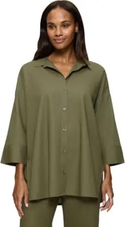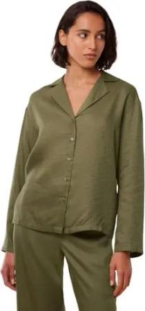 Damen Silky Sensuality Top LSL Shirt, Martini Olive, 42