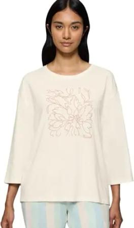 Pyjama-T-Shirt Mix & Match 10218281 Beige Relaxed Fit