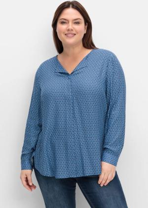Große Größen: Bluse mit Minimalprint, in leichter A-Linie, tiefblau gemustert, Gr.40-60