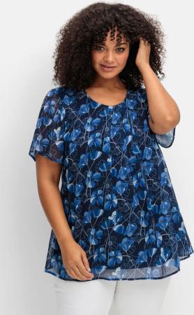 Große Größen: Chiffontunika im Lagenlook, mit Blütenprint, marine gemustert, Gr.40/42-56/58