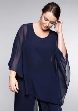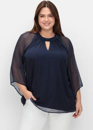 Große Größen: Chiffontunika mit Schmuckausschnitt, marine, Gr.40-58