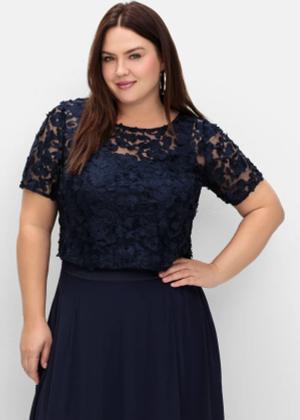 Große Größen: Kurzarm-Tunika aus floraler Spitze, im Rücken offen, marine, Gr.40-58