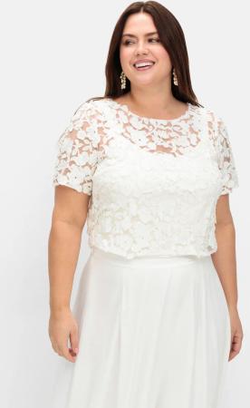 Große Größen: Kurzarm-Tunika aus floraler Spitze, im Rücken offen, offwhite, Gr.40-58