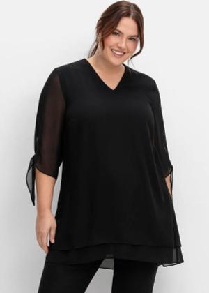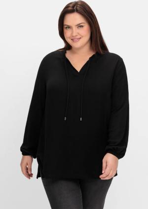 Große Größen: Tunika mit V-Schlitz, Rüsche und Bindeband, schwarz, Gr.40-60