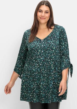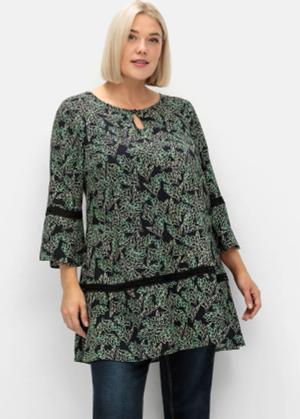 Große Größen: Weit schwingende Tunika mit Alloverprint, tiefgrün gemustert, Gr.40-60