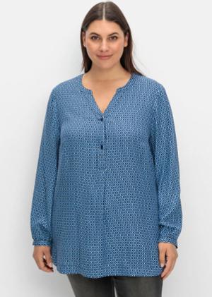 Große Größen: Longtunika mit Minimaldruck und Knopfleiste, tiefblau gemustert, Gr.40-60