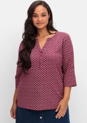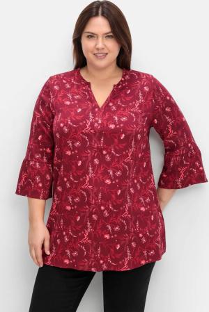 Große Größen: Longtunika mit Volants an den 3/4-Ärmeln, dunkelrot gemustert, Gr.40-60