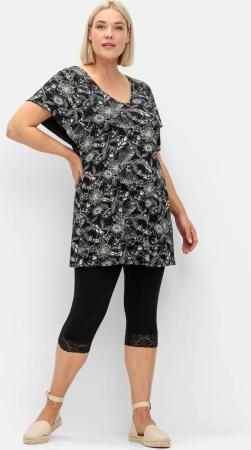 Große Größen: Set aus A-Linien-Shirt und Capri-Leggings, schwarz-weiß, Gr.40-58