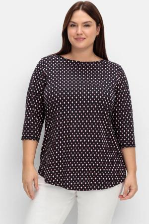 Große Größen: Shirt mit 3/4-Arm und Minimalprint, tiefblau gemustert, Gr.40/42-56/58
